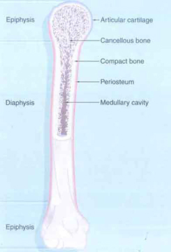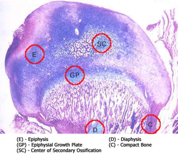 -the epiphysis begins as a center of secondary ossification separted from more advanced compact bone by cartilage
